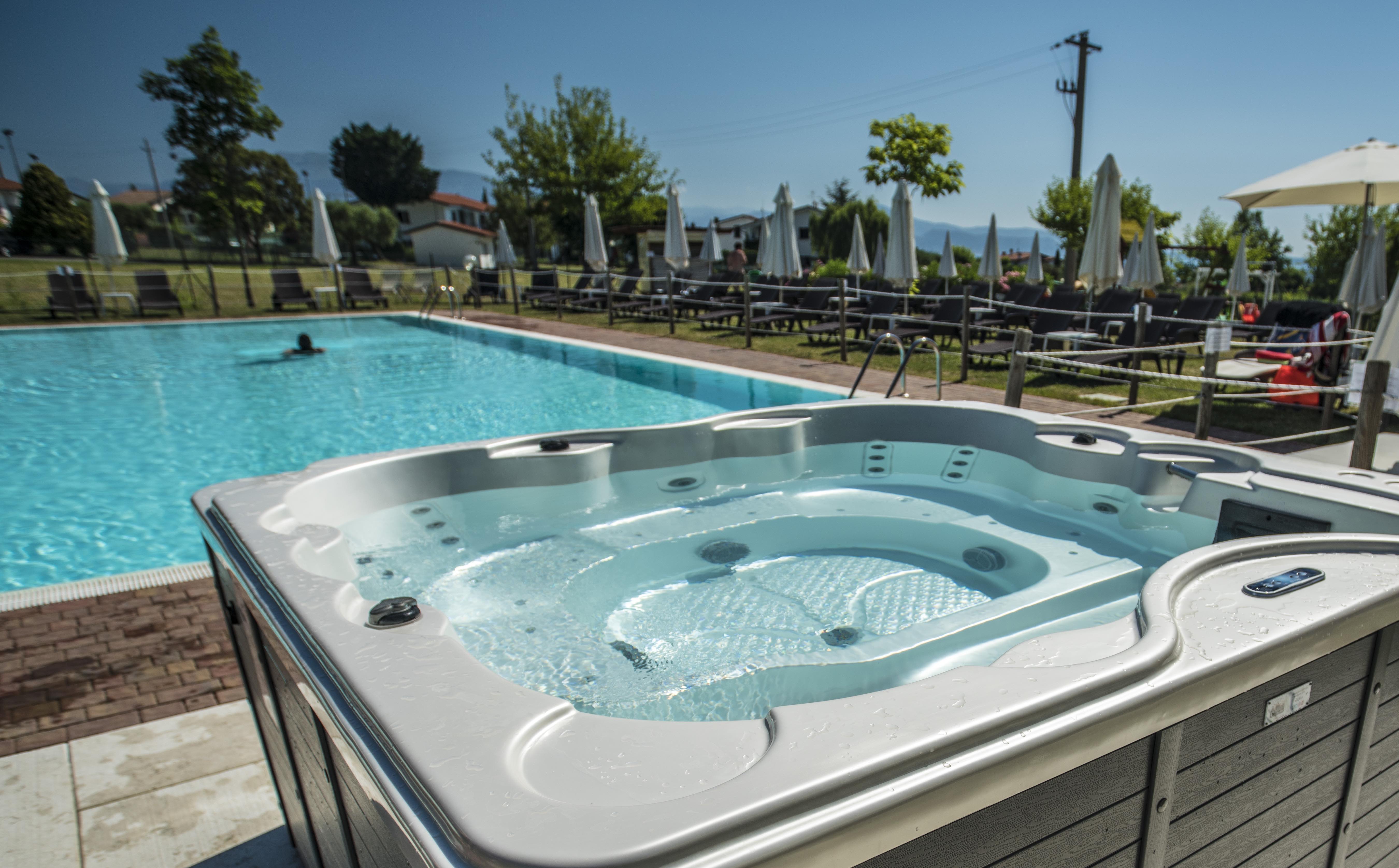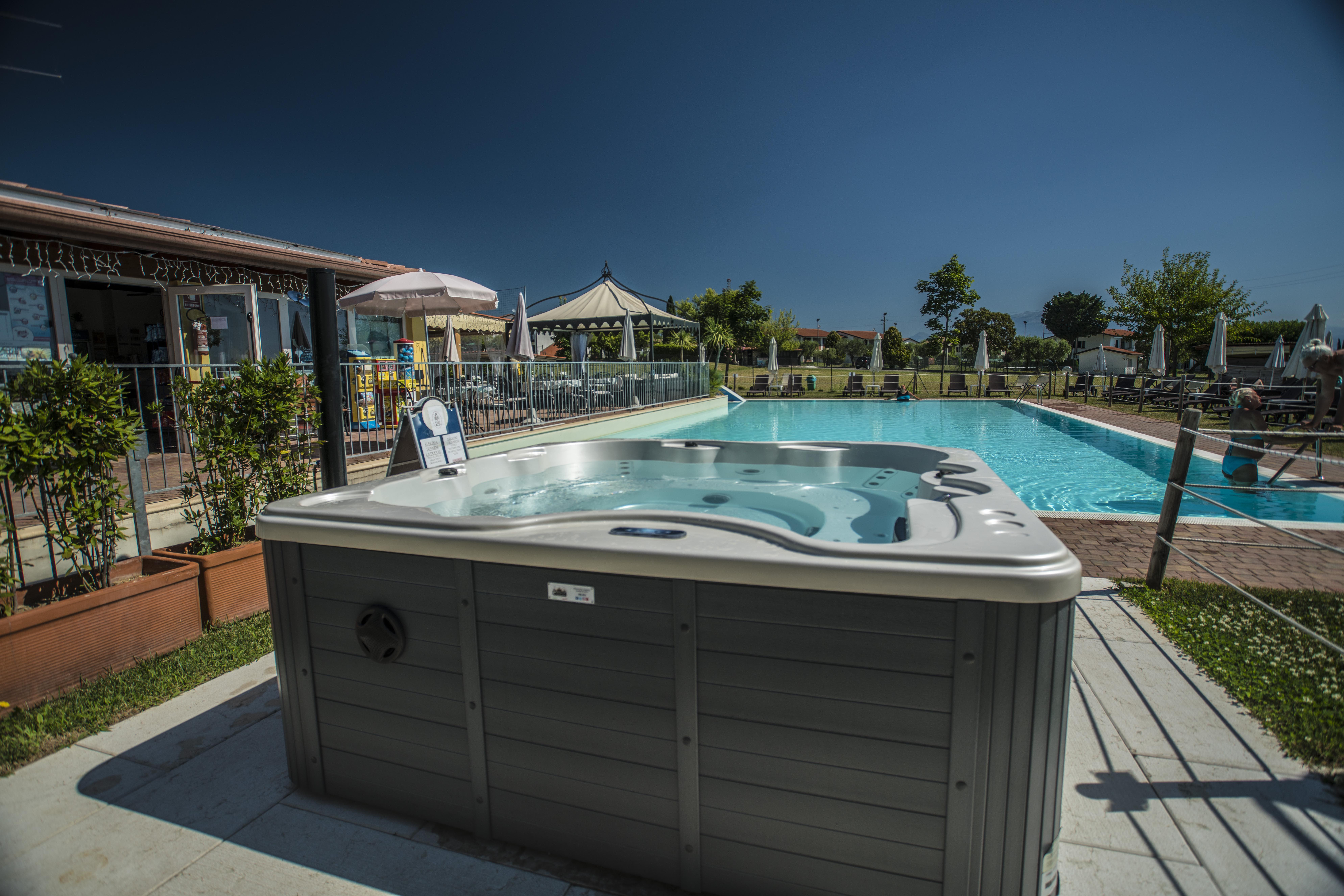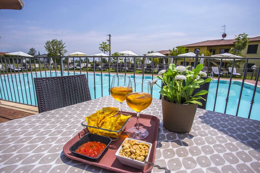 Adiacente una piscina attrezzata con ombrelloni, sdrai e lettini. La piscina è divisa in due zone: per i bambini e adulti.